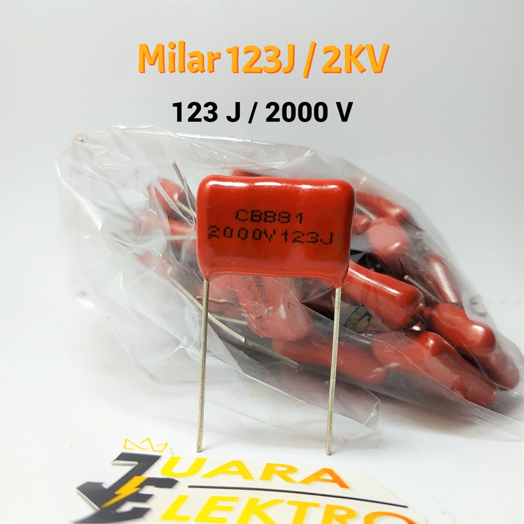 Capasitor Milar 123J / 2KV | Kapasitor Milar 123 J / 2000 Volt Milar masuk dalam kelompok Kapasitor (komponen pasif elektronika yang berfungsi menyimpan energi listrik untuk sementara waktu) Biasa digunakan sebagai komponen untuk proses service TV / Membetulkan Televisi, Rangkaian filter frekuensi tinggi pada spektrum sinyal audio maupun radio, Sirkuit power supply, dll Mudah dipasang pada breadboard ataupun pada perfboard Mempunyai ketahanan yang cukup baik terhadap tegangan tinggi meskipun dalam ukuran yang kecil - Panjang = 4 cm - Lebar = 2 cm - Berat = 2 g / 1 Pcs Produk - Harga Untuk 1 Pcs Produk (Bukan Harga Untuk Banyak Milar) - Beli Grosir Lebih Murah - Tidak Ada Merk
