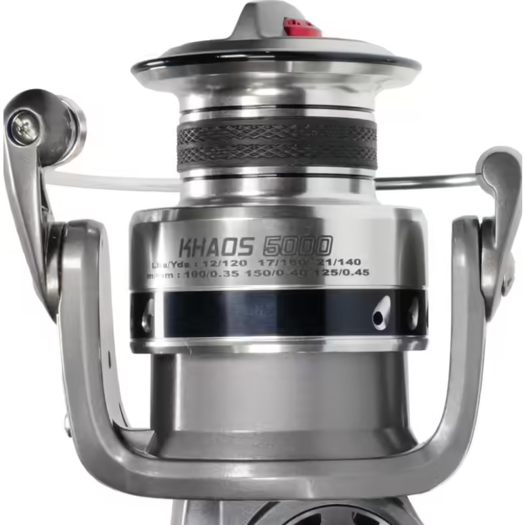 CAPERLAN Khaos 50 Penggulung Untuk Memancing Reel Fishing Putaran Halus -------------- Penggulung ini juga dirancang untuk mendukung pemancingan ikan yang kuat. Kokoh karena frame aluminiumnya, Khaos 50 memungkinkan Anda menguasai ikan laut besar karena drag multi cakram karbonnya dengan berat pelemparan 13 kg.