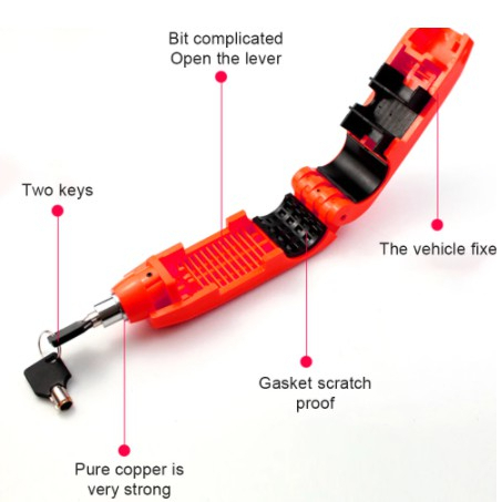 Details: - Fungsi: Anti drill, anti lock pick, solid, mudah digunakan, berguna sebagai pengatur rem tangan parkir Dapat digunakan ke semua jenis motor dengan diameter grip 27 sampai 38 mm - Cara kerja: Mengunci tuas gas dan rem atau kopling ketika diparkir - Terbuat dari glass reinforced nylon & case hardened steel