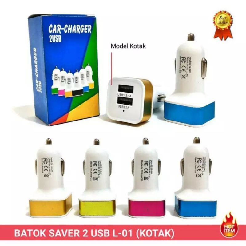 Batok Charger Mobil SAVER 2PORT USBMODEL Bulat DAN KOTAK tanpa Kabel Model dikirim random sesuai stok kami . Ready : Pink, Biru, Hijau, Silver, Gold warna random tidak bisa pilih Charger Mobil 2 Port USB Dengan dual Output, mengisi 2 perangkat. Spesifikasi - Desain dan warna yang menarik - Aman, stabil dan lebih efisien - Input = DC 12V-24V - Output = DC 5.0V/2.1A dan DC 5.0V/1A - Kompatibel dengan semua jenis smartphone