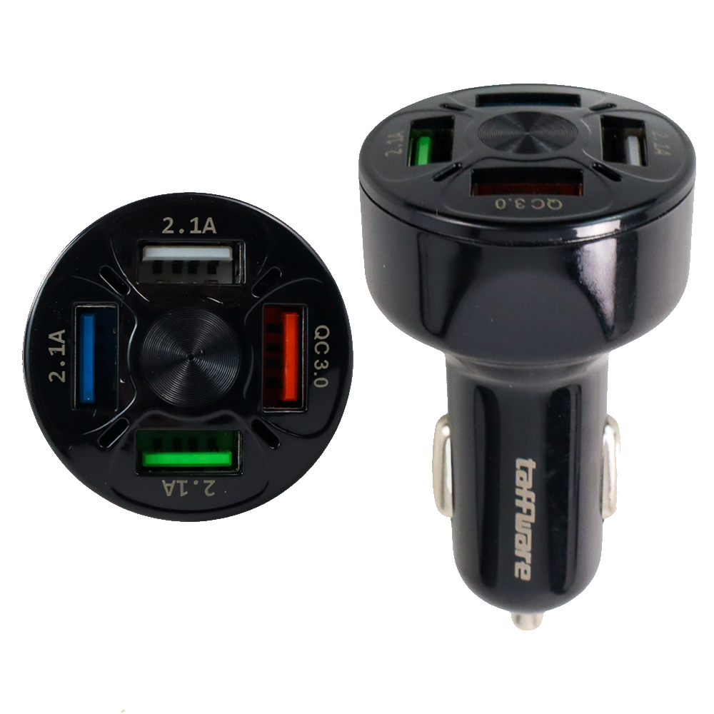 Car charger ini memiliki 4 port USB yang digunakan untuk charging empat gadget Anda sekaligus dengan aman di mobil. Car charger ini juga menggunakan bahan ABS dan desain minimalis sehingga membuat charger terlihat menarik untuk interior dashboard mobil Anda.