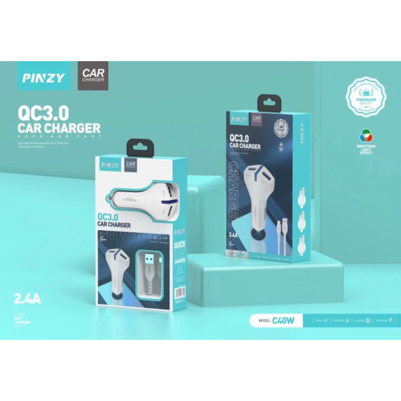 Detail Car charger PINZY C40w QC 3.0 Saver Mobil 2 Port USB 2.4A Free kabel - Car charger C40w 2 port
