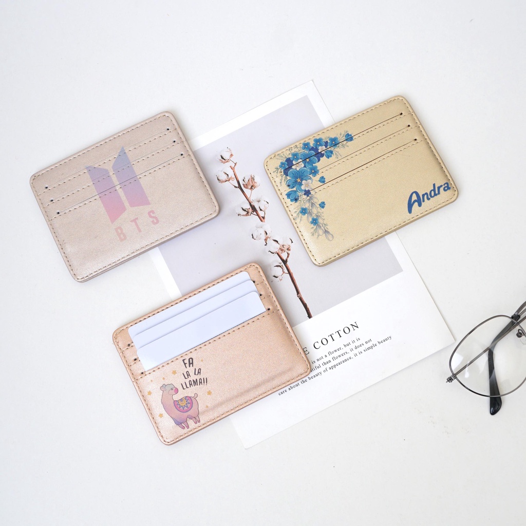 Tempat kartu ini cocok untuk menyimpan kartu anda, ukuran yang kecil dan design yang minimalis membuatnya praktis dibawa kemana saja SPESIFIKASI : - Bahan Faux Leather - Memiliki 6 Slot kartu, masing masing 3 Slot pada setiap sisi - Terdapat 1 slot utama di bagian tengah untuk menyimpan uang - Ukuran P : 10cm L : 8cm - Sudah termasuk PRINT CUSTOM