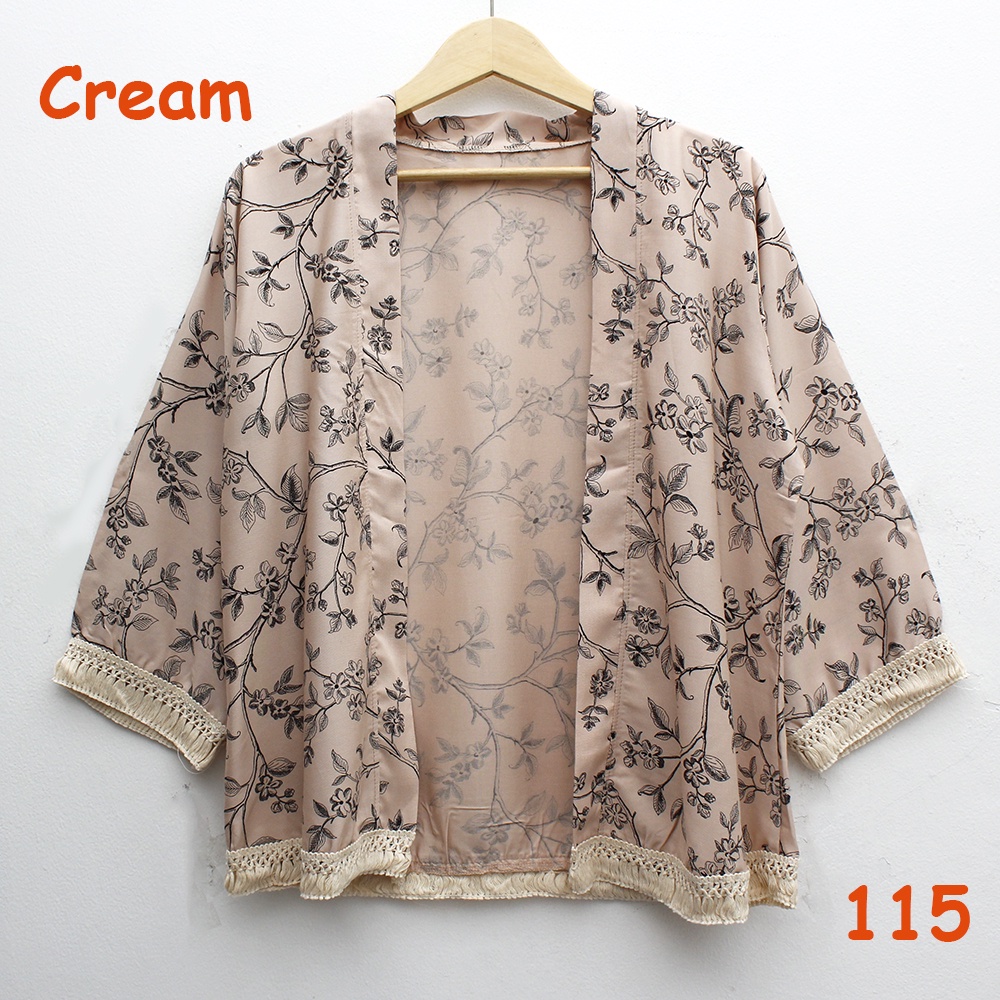 Detail ๐ฑ๐๐๐๐๐๐๐ญ๐๐๐๐๐๐ cardigan outer batik rumbai cream bohemian etnik tribal katun kardigan batik lengan lebar