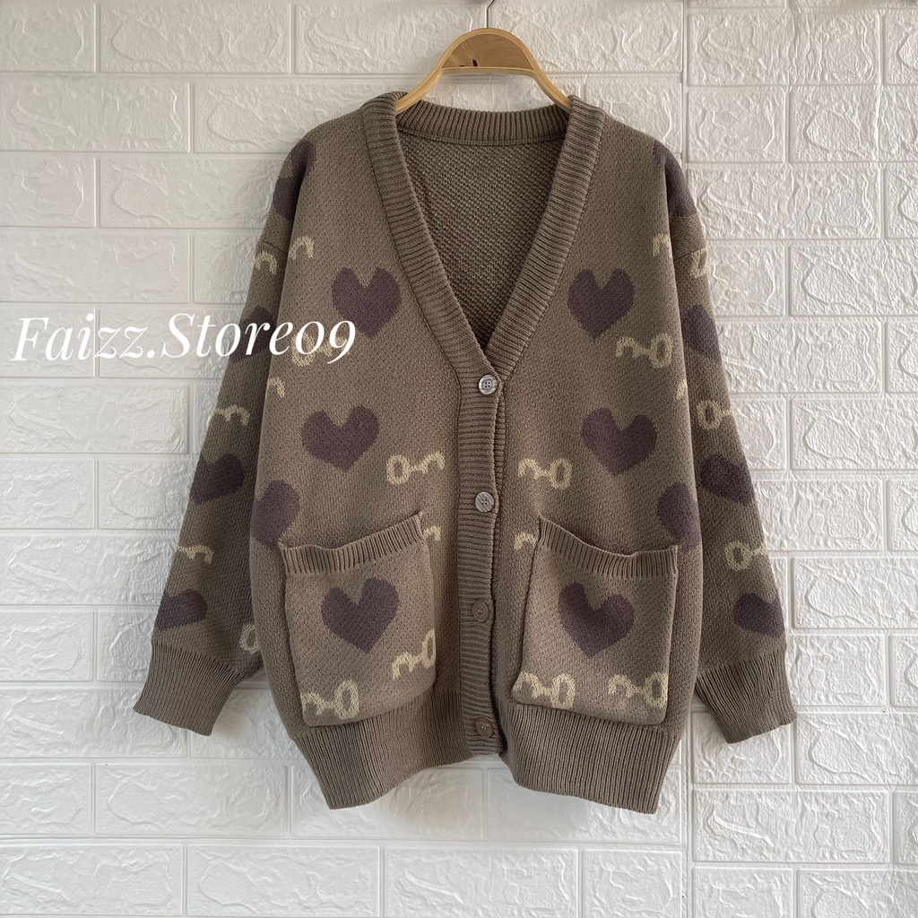 Detail CARDIGAN RAJUT KANCING VALENTINE MOTIF LOVE KUNCI OVERSIZE OUTER WANITA