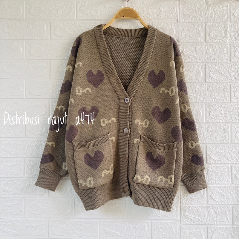 Detail CARDIGAN RAJUT KANCING VALENTINE MOTIF LOVE KUNCI OVERSIZE OUTER WANITA