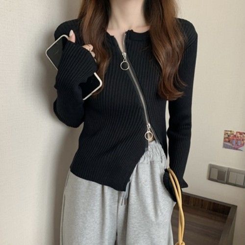 Detail Cardigan Rajut Resleting Wanita Polos Lengan Panjang Korean Outer