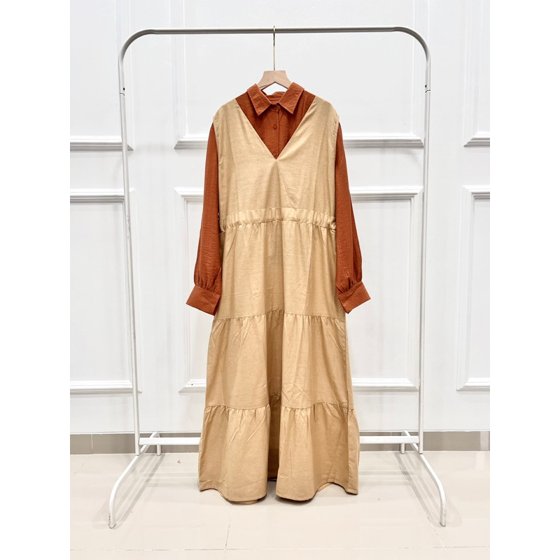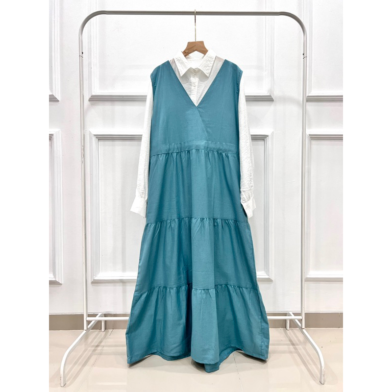 overall bahan linen HQ - tali serut - rempel muter depan belakang - ld 110cm pjg 130cm inner bahan polo linen - bahan adem ,flowy banget ,bertekstur - kancing full aktif - ld 108cm pjg 54cm All size ,Super Recomanded