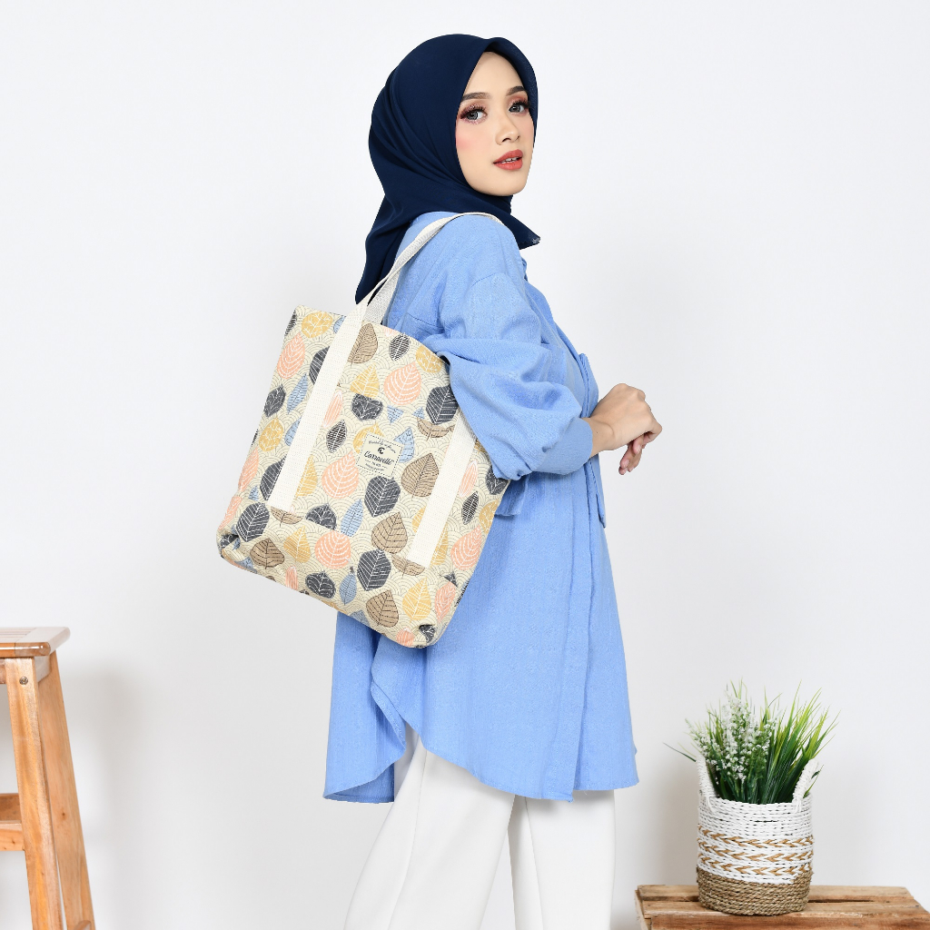 Detail Carravelle - Totebag Resleting Wanita Bahan Kanvas Sueding polos dan Canvas motif Tebal Lembut Bisa Custom Sablon Untuk Tas Seminar Souvenir Gift Pernikahan