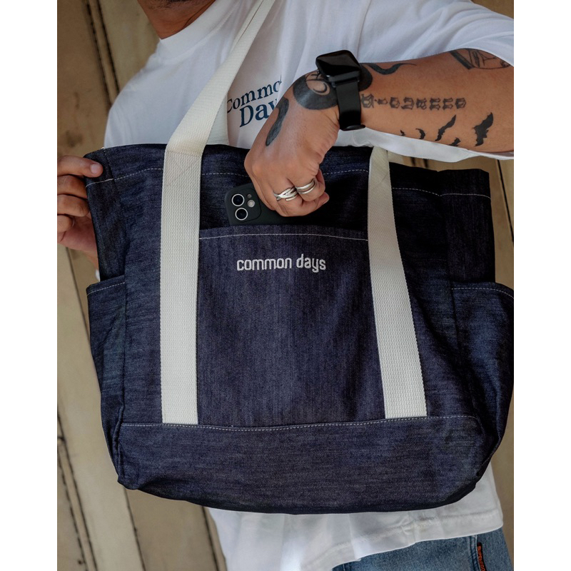 Detail Carry All Totebag Denim / blue black / Vintage / Kuliah / Tebal / Premium / laptop / tumbler