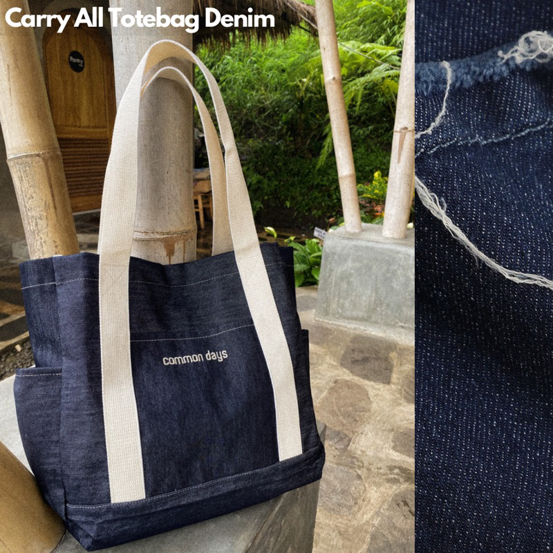 Carry All Totebag Denim / blue black / Vintage / Kuliah / Tebal / Premium / laptop / tumbler