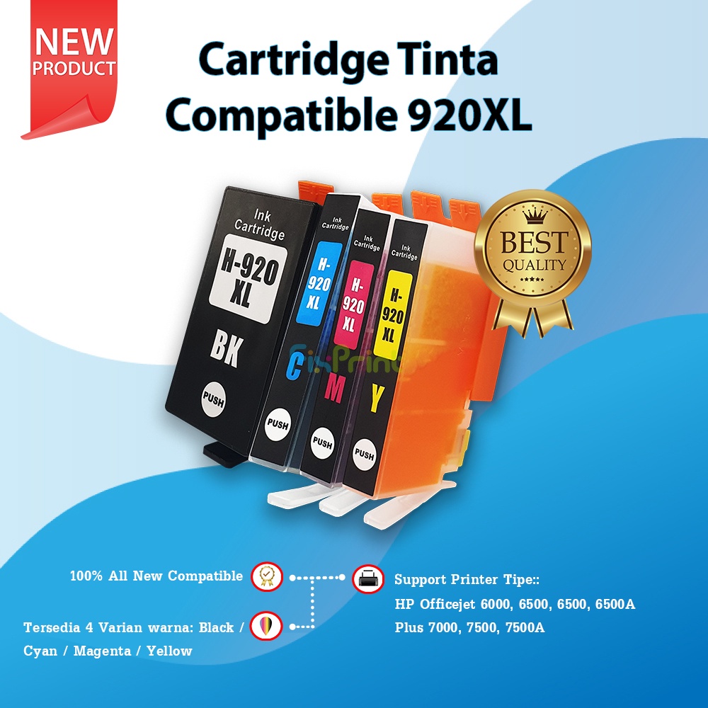 Detail Cartridge Tinta Compatible 920XL 920 Black Cyan Magenta Yellow Refill Ink H-920XLC 920 Printer XP Officejet 6000 6500 6500A 7000 7500 7500A With Chip