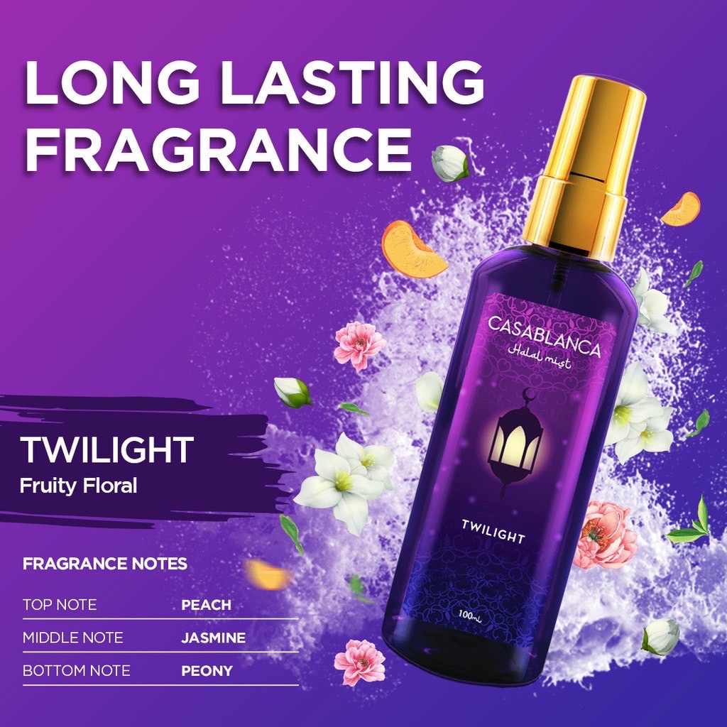 Kini bisa tetap wangi sepanjang hari dan juga nyaman saat beribadah. Casablanca Halal Mist terdiri dari 5 variant yakni :