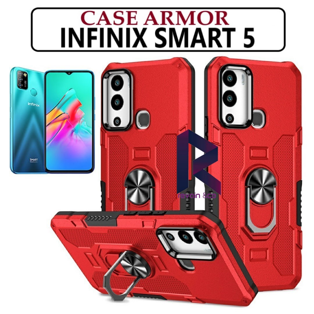 Detail Case Armor INFINIX SMART 5 Iring Cincin Magnetic Kesing Hp Protect kamera Premium Hard Case Standing Robot Pelindung Kamera