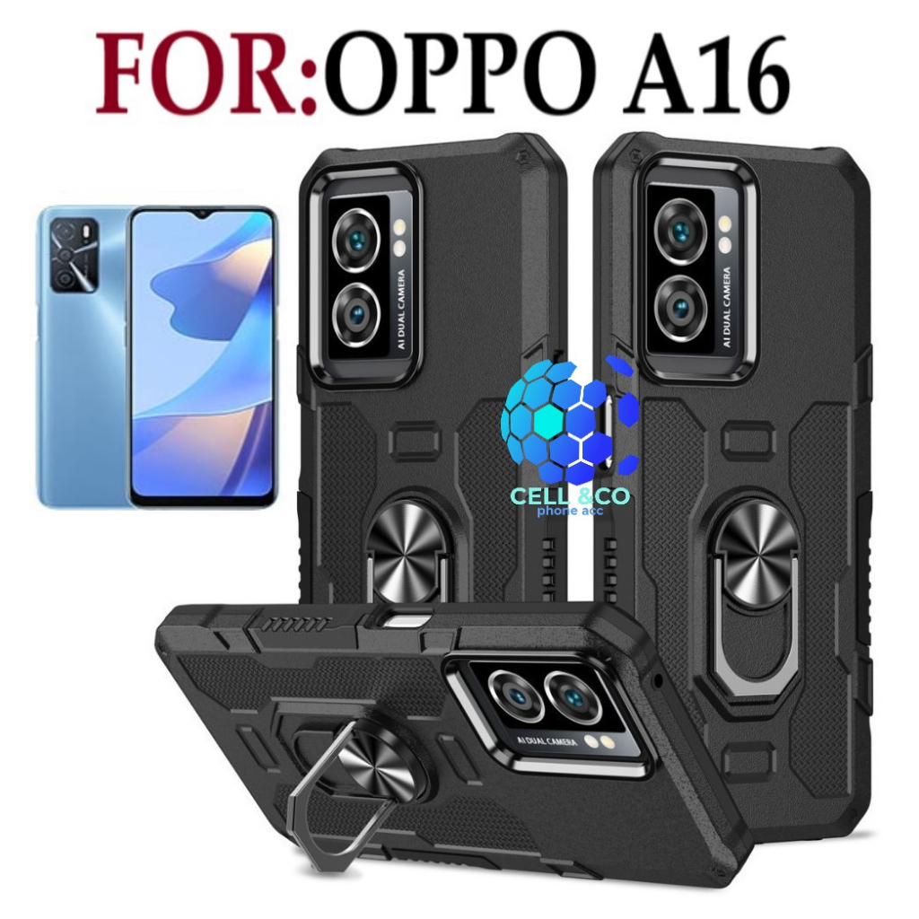 Detail Case Armor OPPO A16 Iring Cincin Magnetic Kesing Hp Protect kamera Premium Hard Case Standing Robot Pelindung Kamera