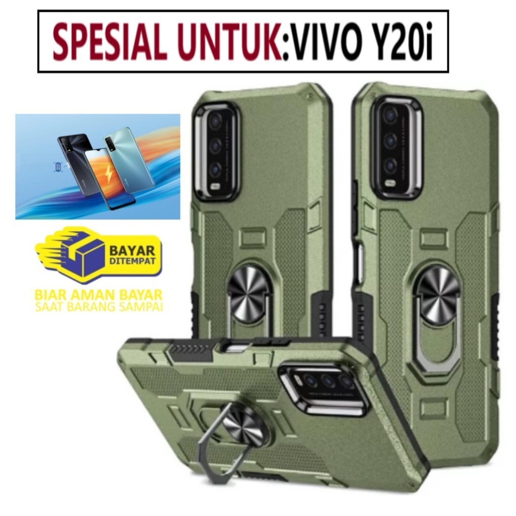 Detail Case Armour VIVO Y20i Iring Cincin Magnetic Kesing Hp Protect kamera Premium Hard Case Standing Robot Pelindung Kamera