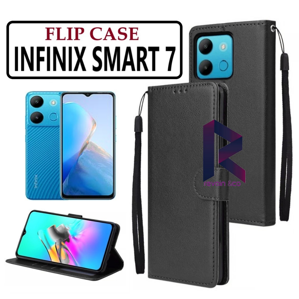 flip cover INFINIX SMART 7 terbuat dari bahan premium leather(kulit sintetis)bahan tebal,dengan jahitan asli dan rapi.tersedia tempat foto,3 tempat kartu dan satu slot tempat uang. dan ada tali gantungan yang bisa di buka pasang.memiliki fungsi flip standing(dapat di berdirikan secara horizontal berguna untuk nonton video.melindungi handphone anda dari benturan dan goresan dan juga noda.tekstur kulit yang tidak licin sehingga nyaman saat di genggam(mewah dan elegant)