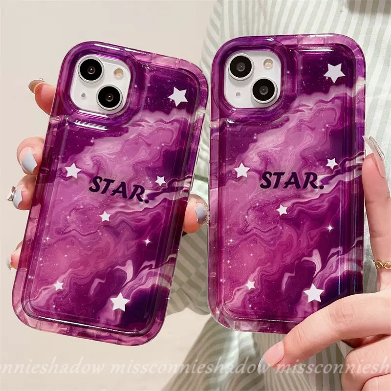 Handphone & Aksesoris > Casing & Skin > Casing & Skin Handphone > Case Kompatibel Untuk iPhone XR 11 Pro MAX 7Plus 8Plus 14 13 12 Pro MAX 6 6S 7 8 Plus X XS MAX Shockproof Fashion Marble Gradient Starry Sky Star Airbag Lembut TPU Penutup Belakang Anti Jatuh