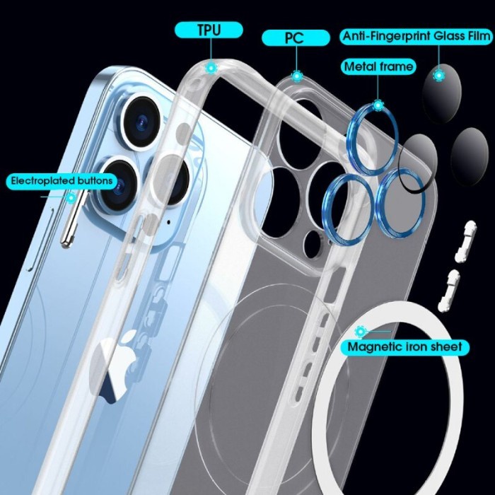Fitur : - Casing Premium Kualitas terbaik Dengan Bagian Belakang Polikarbonat Matte dan Bahan Silikon di bagian samping - Air Bumper di setiap sudut case menjamin case aman dari segala benturan - Cincin Magnet Neodymium Magsafe yang kuat di bagian belakang - Tombol Clicky Baru yang Ditingkatkan - Tombol Home dan volume di jamin enak di pencet - Lens Ring + Kaca Kamera Perlindungan lensa kaca - Anti Debu & Anti Sidik Jari - Desain Tepi Persegi