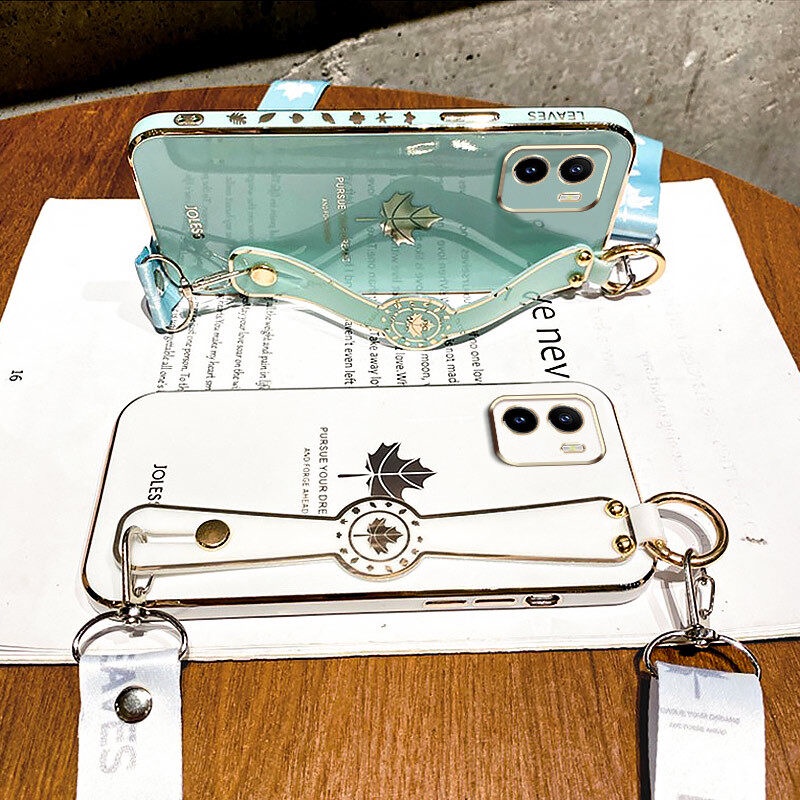 Detail Case Motif Daun Maple Dengan lanyard Untuk Vivo Y15S Y15A