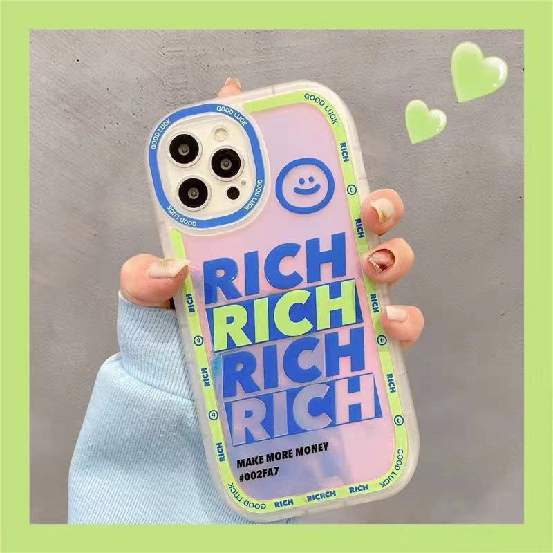 Case Motif Print Laser RICH Bahasa Inggris Untuk IPhone 12 13 14 11 Pro Max X Xs Max Xr Thhght