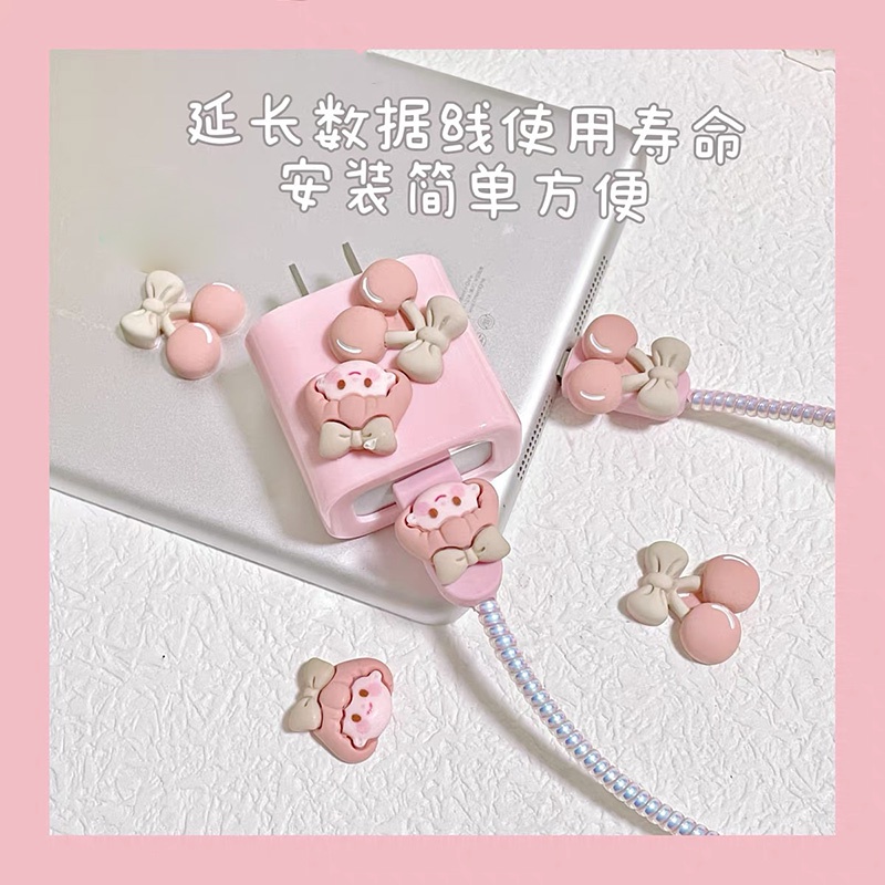 Detail Case Pelindung Kabel Charger Motif Cherry Dan Anak Perempuan Untuk iPhone 20W 11 12 13pro Max