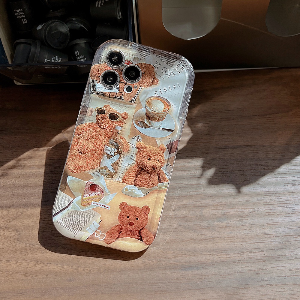 Handphone & Aksesoris > Casing & Skin > Casing & Skin Handphone > Case Pelindung Lensa Kamera Transparan Motif Teddy Bear 3D Untuk Iphone 11 12 13 14 PLUS PRO MAX