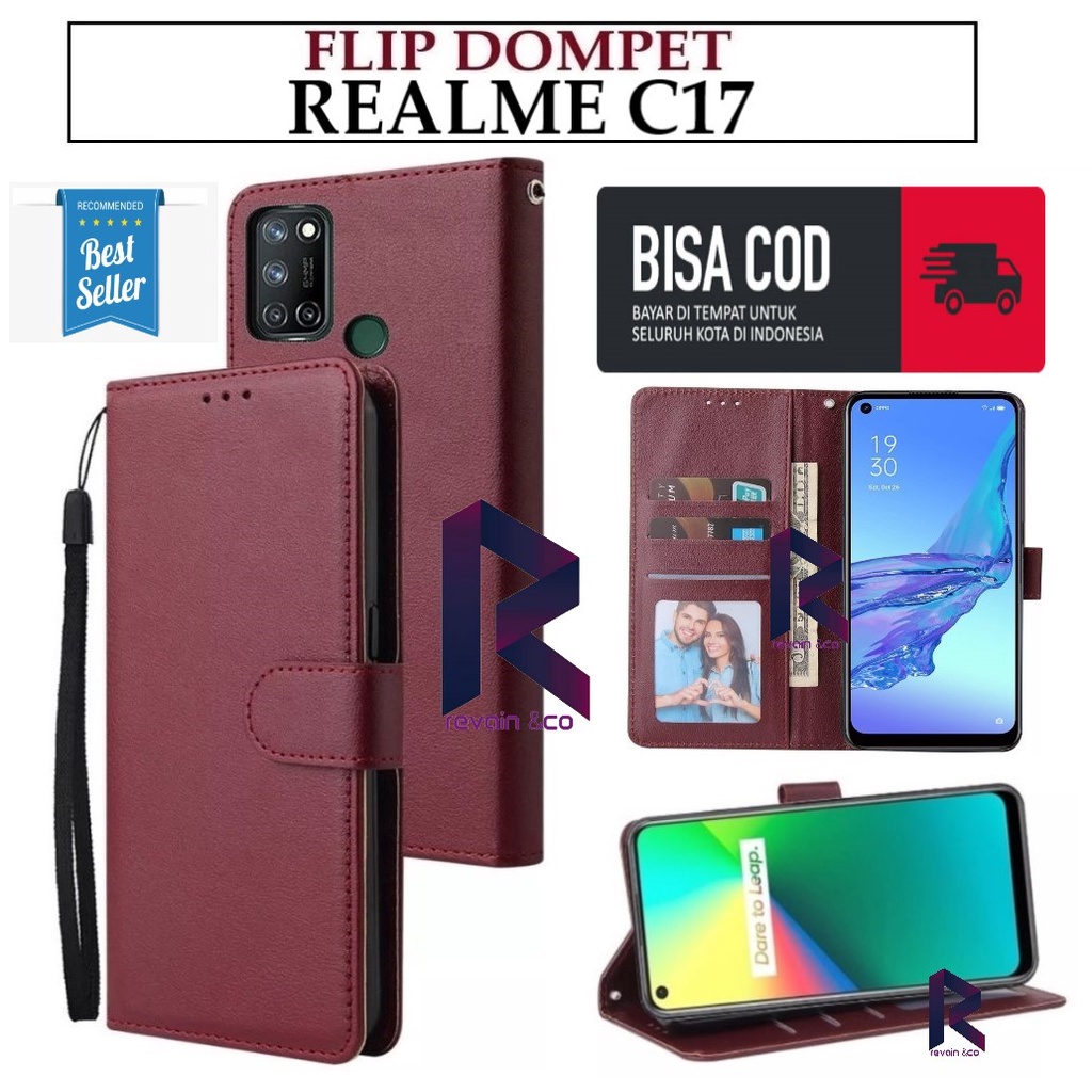 flip cover REALME C17 terbuat dari bahan premium leather(kulit sintetis)bahan tebal,dengan jahitan asli dan rapi.tersedia tempat foto,3 tempat kartu dan satu slot tempat uang. dan ada tali gantungan yang bisa di buka pasang.memiliki fungsi flip standing(dapat di berdirikan secara horizontal berguna untuk nonton video.melindungi handphone anda dari benturan dan goresan dan juga noda.tekstur kulit yang tidak licin sehingga nyaman saat di genggam(mewah dan elegant)