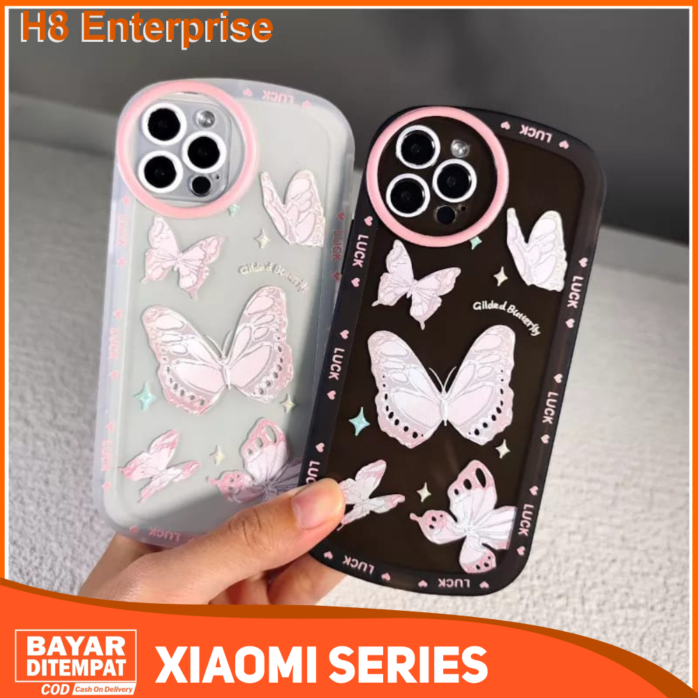 Handphone & Aksesoris > Casing & Skin > Casing & Skin Handphone > Case Redmi 9A 9C 9T 10 10 Prime 10A 12C Redmi Note 10 Note 10S Note 10 Pro Note 11 Note 11S Poco C55 Poco M3 Poco X3 Pro NFC Casing Pink Butterfly Silicon Premium