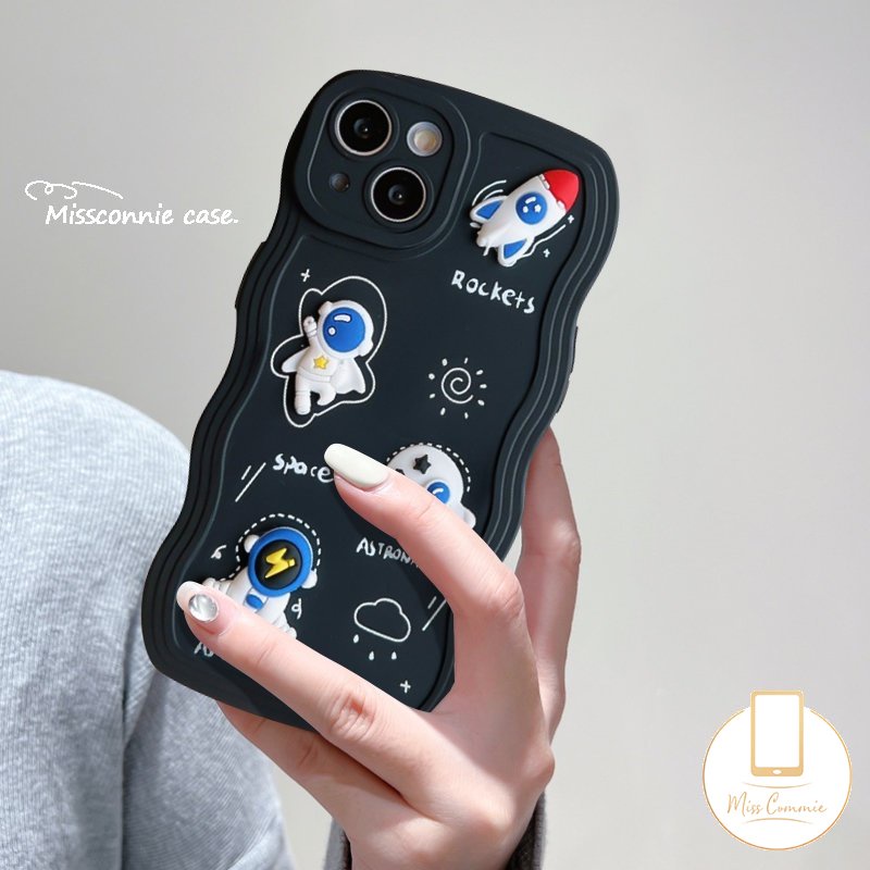 Case Redmi A1 12C 9 10A 10 9T 10C 9A A1+9C NFC Redmi Note11 9 8 11Pro 11s 10 10s 9s 10Pro Max PO CO X3 NFC Pro M3 Mi 11T Pro Kartun Boneka 3D Lucu Astronot Antariksa Sarung Tepi Wavy