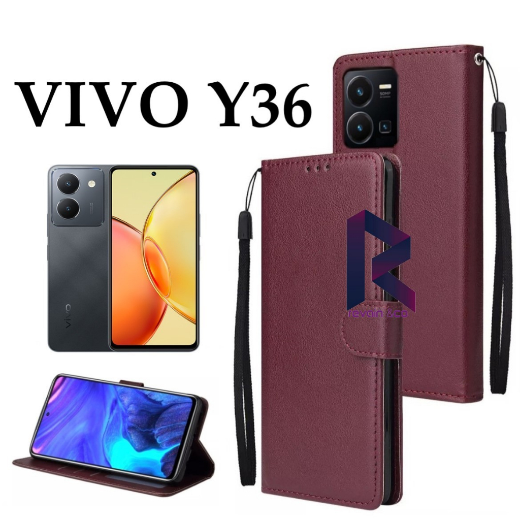 flip cover VIVO Y36 terbuat dari bahan premium leather(kulit sintetis)bahan tebal,dengan jahitan asli dan rapi.tersedia tempat foto,3 tempat kartu dan satu slot tempat uang. dan ada tali gantungan yang bisa di buka pasang.memiliki fungsi flip standing(dapat di berdirikan secara horizontal berguna untuk nonton video.melindungi handphone anda dari benturan dan goresan dan juga noda.tekstur kulit yang tidak licin sehingga nyaman saat di genggam(mewah dan elegant)