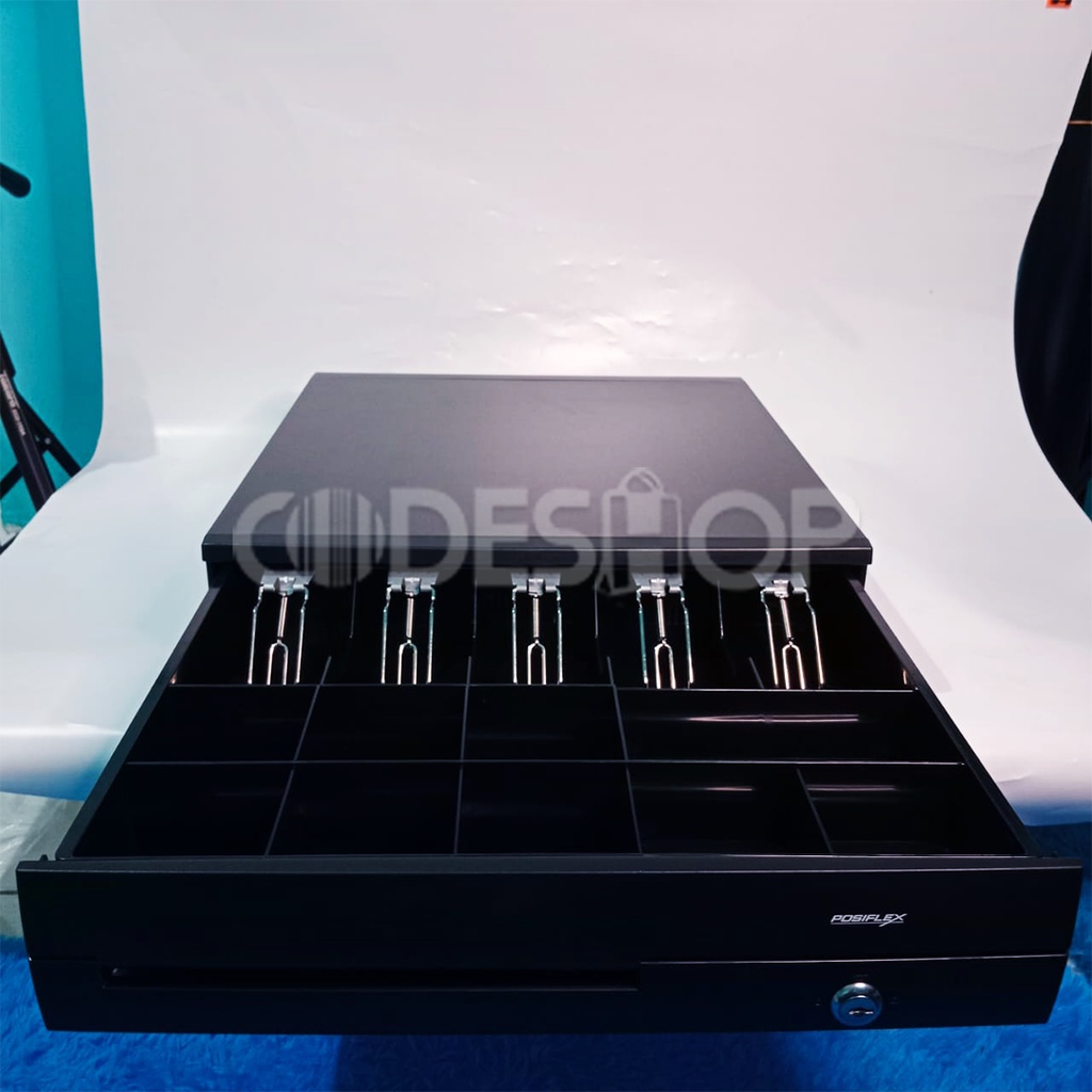 Komputer & Aksesoris > Peralatan Kantor > Penghitung Uang > Cashdrawer Posiflex CR4100g2 Laci Uang Kasir Bahan Besi 5 Slot Uang Kertas 8 Slot Uang Koin RJ-11