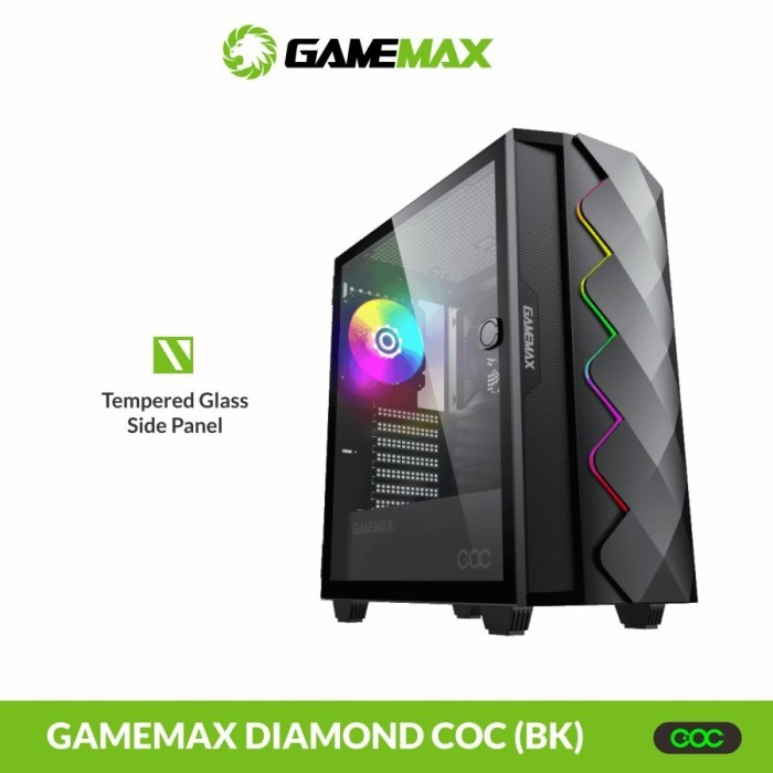 Merek baru untuk 2021 GameMax dengan bangga memperkenalkan kasing game PC Diamond COC Mid-Tower. Didesain dengan kemudahan dalam pembuatan dan diselesaikan dengan estetika premium, kasing ini ditujukan bagi mereka yang ingin naik ke level berikutnya tanpa menguras kantong. Desain Pintu Geser, Mudah dibuka dan ditutup, Panel depan dengan pengontrol built-in strip ARGB, Ini dengan efek sempurna berlian dan strip LED spektrum bertatah untuk memberikan kasus ini keseimbangan sempurna antara gaya dan RGB. Chassis COC Cooling & Overclocking Paten, Kipas Turbo COC Aktif dan Intake Udara Berbentuk T, Teknologi Pendingin Motherboard Langsung, Memberikan tekanan angin positif untuk membantu pembuangan panas Motherboard.