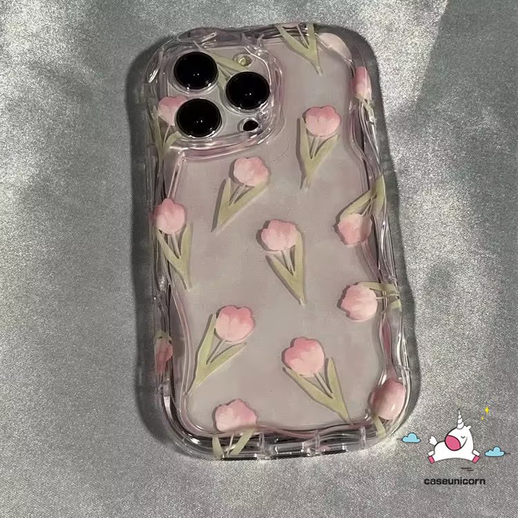 Casing Braket Bunga Untuk Realme C12 C31 5 C35 C55 C21Y C25 C25Y 9i 6i 7i 5i 5s C33 C20 C15 C30 C25s C11 C21 C17 C20A Bunga Segar Tulip 3D Tepi Bergelombang Lengkung Soft Case