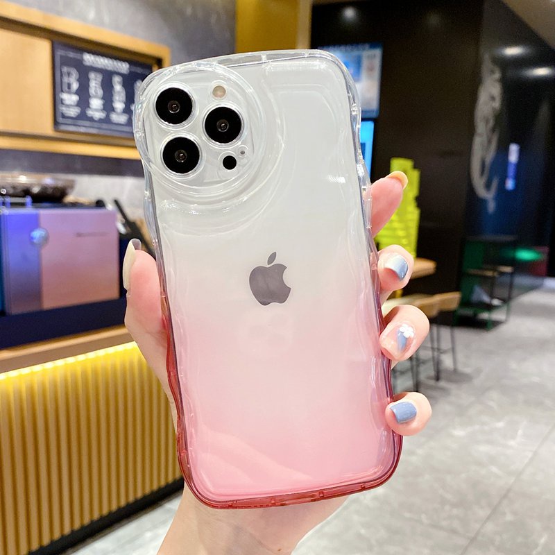 🔔Stok Siap】 Wave Air Cushion Soft Case IPhone 7 8 Plus SE 2020 X XR XS Max Cover untuk IPhone 11 12 13 14 Pro Max 14 Plus 7+8+ Casing Gradien Gadis Merah Muda Hadiah Wanita