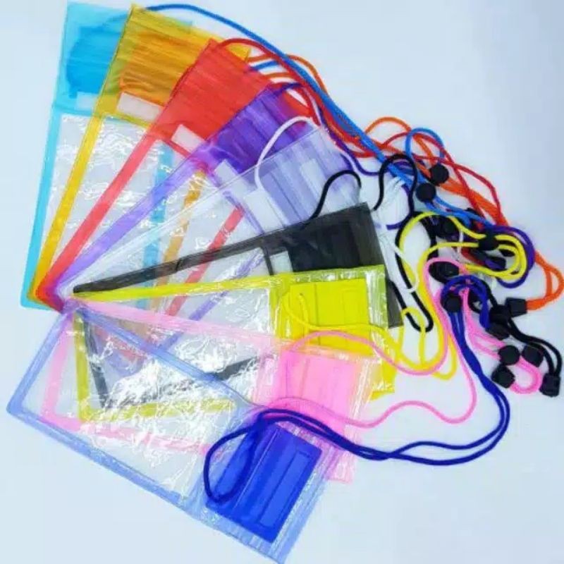 - Kantong HP waterproof 6,5" Velcro) - Dimensi: 10x21cm - Bahan : plastik waterproof - Kegunaan : - Foto Selfie dalam Air / Kolam Renang / Perairan - Anti Debu - Anti air hujan utk digunakan sehari-hari - Dapat dipakai untuk barang lain seperti notes / atm / pasport / dll