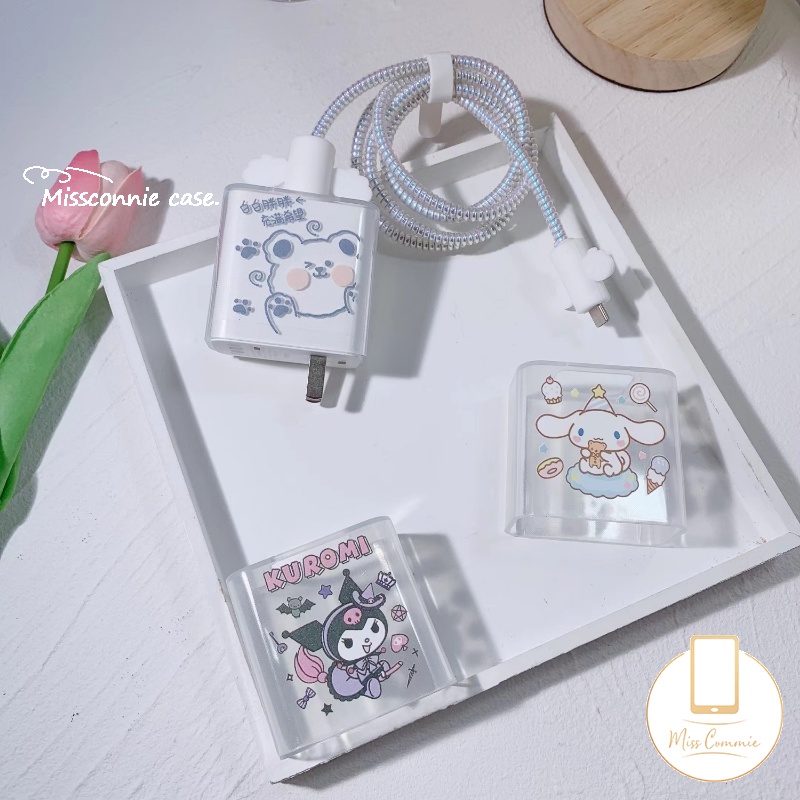 Handphone & Aksesoris > Kabel, Charger, & Konverter > Casing, Penggulung & Pengikat Kabel > Casing Kompatibel Untuk Apple 18 /20W Adaptor Charger Case Berliku Kawat Ikat Beruang Lucu Motif Kartun Anime Lembut TPU Cover Kabel USB Spring Line Wrap Pelindung Data Line Cord Organize
