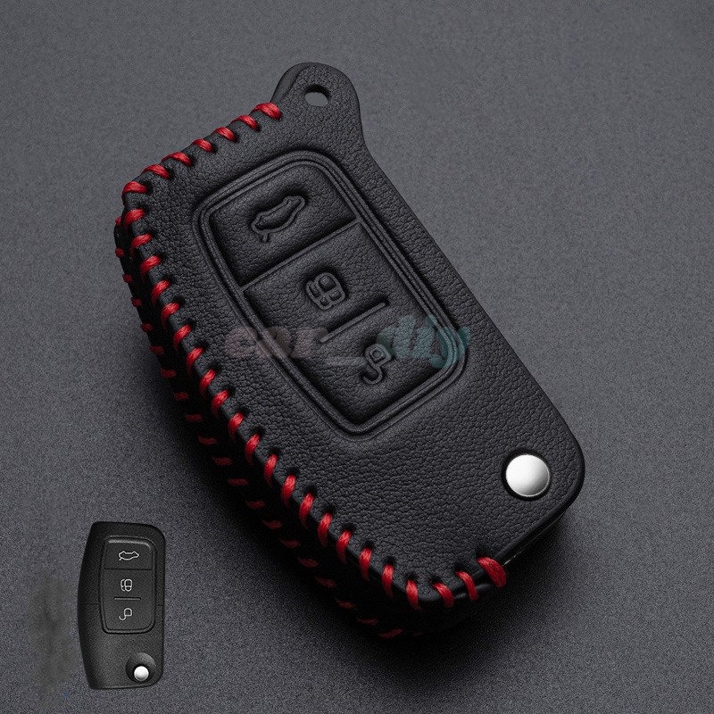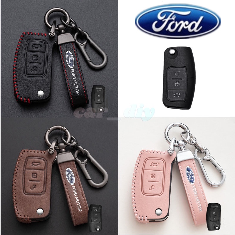 Detail Casing Kunci Mobil Lipat 3 Tombol Bahan Kulit Untuk Ford Fiesta Focus 2 Ecosport Kuga Escape Falcon B-Max C-Max
