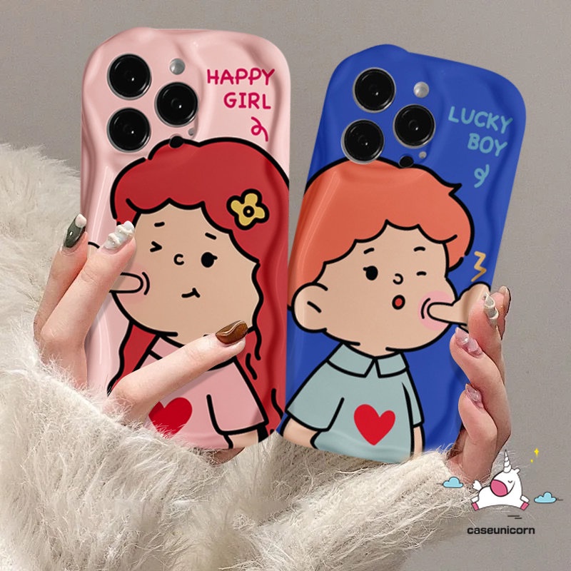 Casing Pasangan Lucu Untuk Realme C25 C55 5 9i 5i 7i 6i 5s C35 C12 C31 C21Y C11 C25Y C20 C33 C25s C30 C15 C21 C20A C3 C3 C17 Kartun Anak Laki-laki Perempuan Kekasih Lembut 3D Penutup Tepi Melengkung Berat