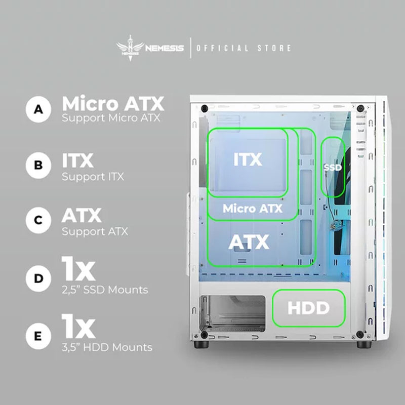 Detail CASING PC Gaming Game NYK Nemesis T10 SCYLLA Black & White Tempered Glass Hitam Putih CASE PC Gaming