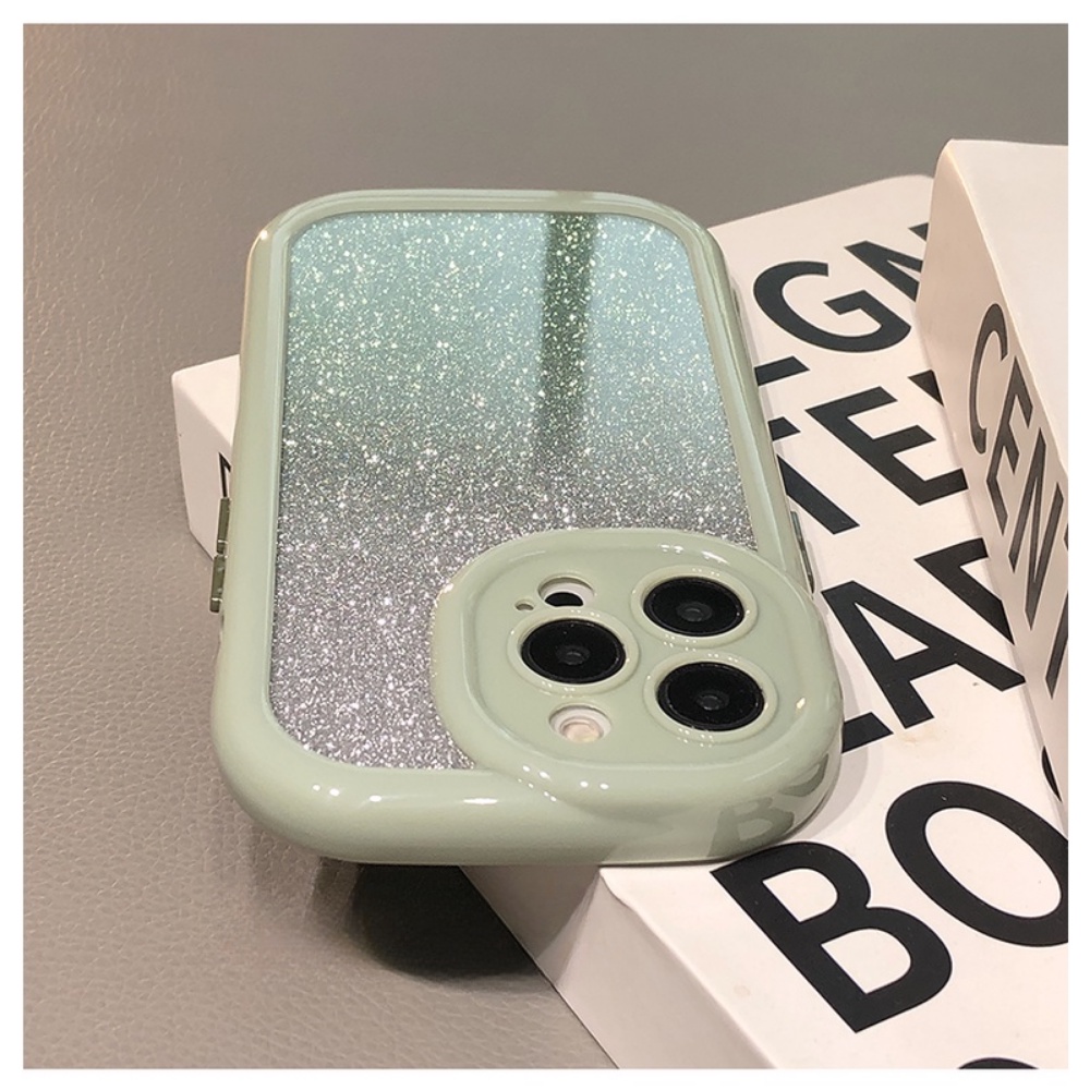 Handphone & Aksesoris > Casing & Skin > Casing & Skin Handphone > Casing Ponsel Bingkai Oval Glitter Hijau Mint Lucu Untuk iPhone 14 Pro 13 12 11 Pro Max Warna Permen Shockproof Bumper Penutup Belakang