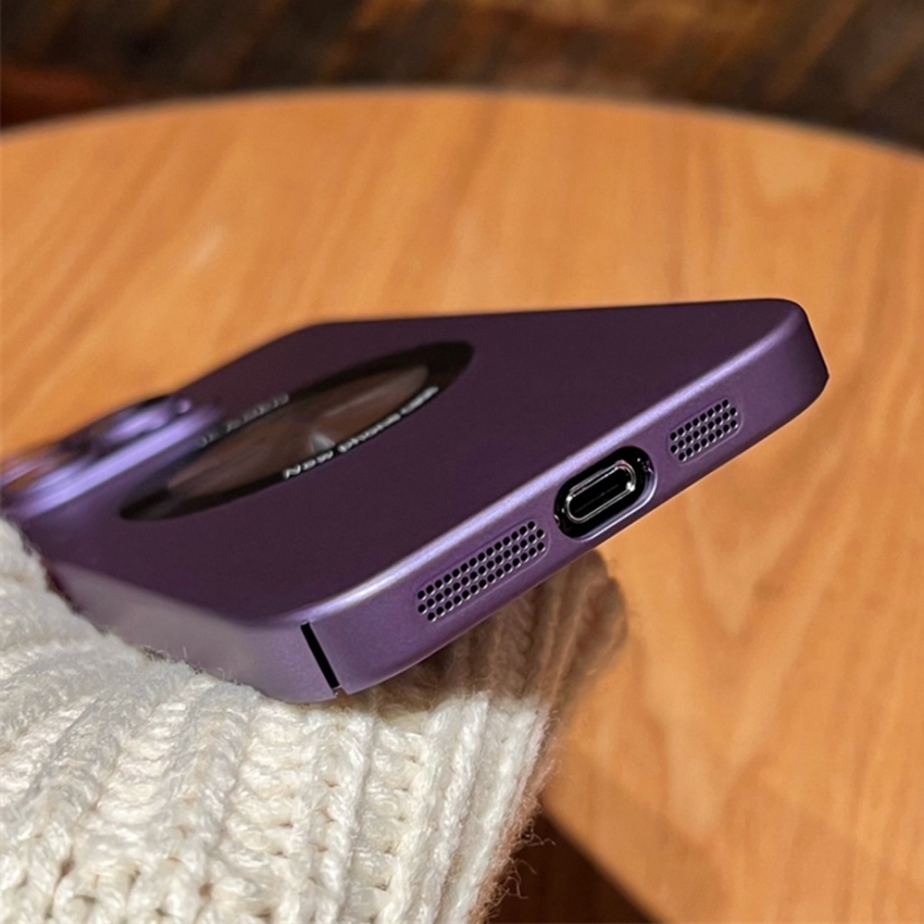 Handphone & Aksesoris > Casing & Skin > Casing & Skin Handphone > Casing Ponsel Lubang Logo Kaca Matte Ultra Tipis Untuk Iphone13 12 11 14 Pro Max Casing iPhone 14Plus Shockproof Hard PC Dengan Lensa Film Cover