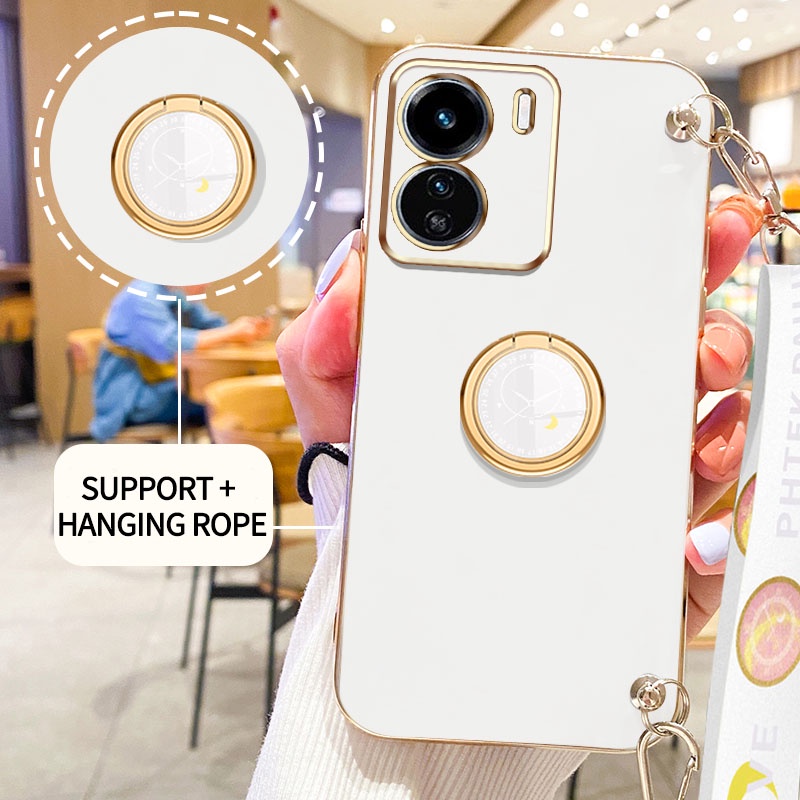 Detail Casing Ponsel Pohon Gloden Untuk Vivo Y02S Y16 Y77 Y77E (t1) Y78+Casing Original Dengan Lanyard Standand Jam