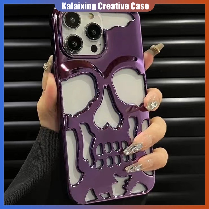 Detail Casing Ponsel Tengkorak Hollow Electroplating Untuk iPhone 14pro Max 13Pro 12promax Xs Max Xr X Xs Hard Case