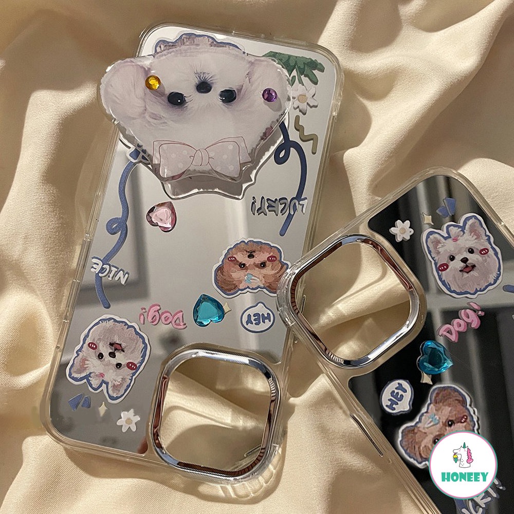 Detail Casing Ponsel Untuk iPhone 14 pro Max13 12 pro max iPhone 11 pro max Lucu Puppy Makeup Cermin Handphone Cover Pelindung