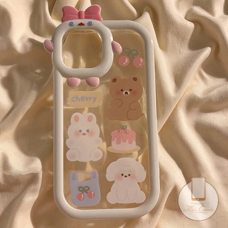 Casing Realme 8I 9i 8 9Pro+C33 C15 C25Y C3 9i 6i C12 C25 C25s C31 C21Y C30 C11 C35 C21 7 C2 C1 5 5s 5 7i C17 Lovely 3D Bow Lensa Monster Kecil Kartun Beruang Bunny Cherry Lembut Case Tempat Kotak Makan
