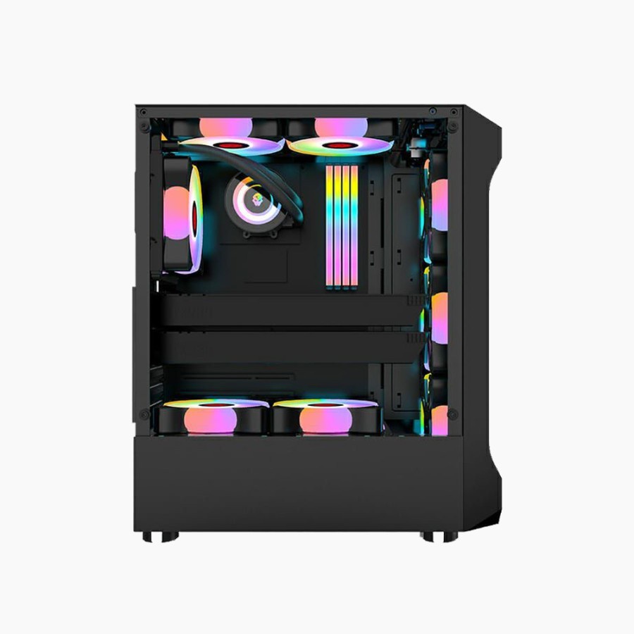 Fan Support : Support up to 8 x 12cm fan Support Dust Filter Top : 2 x 12cm fan Rear : 1 x 12cm fan Front : 3 x 12cm fan Bottom support : 2 x 12cm fan Bottom mount ATX Power Supply