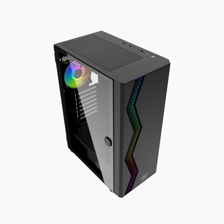 Details Brand : Simbadda Model : Battleground 205 Color : Black Material Chassis : SPCC 0.4mm Full Black Coating Structure Side Panel : Tempered Glass Window Motherboard Support Size : ATX - m-ATX - Mini-ITX RGB Strip : Yes