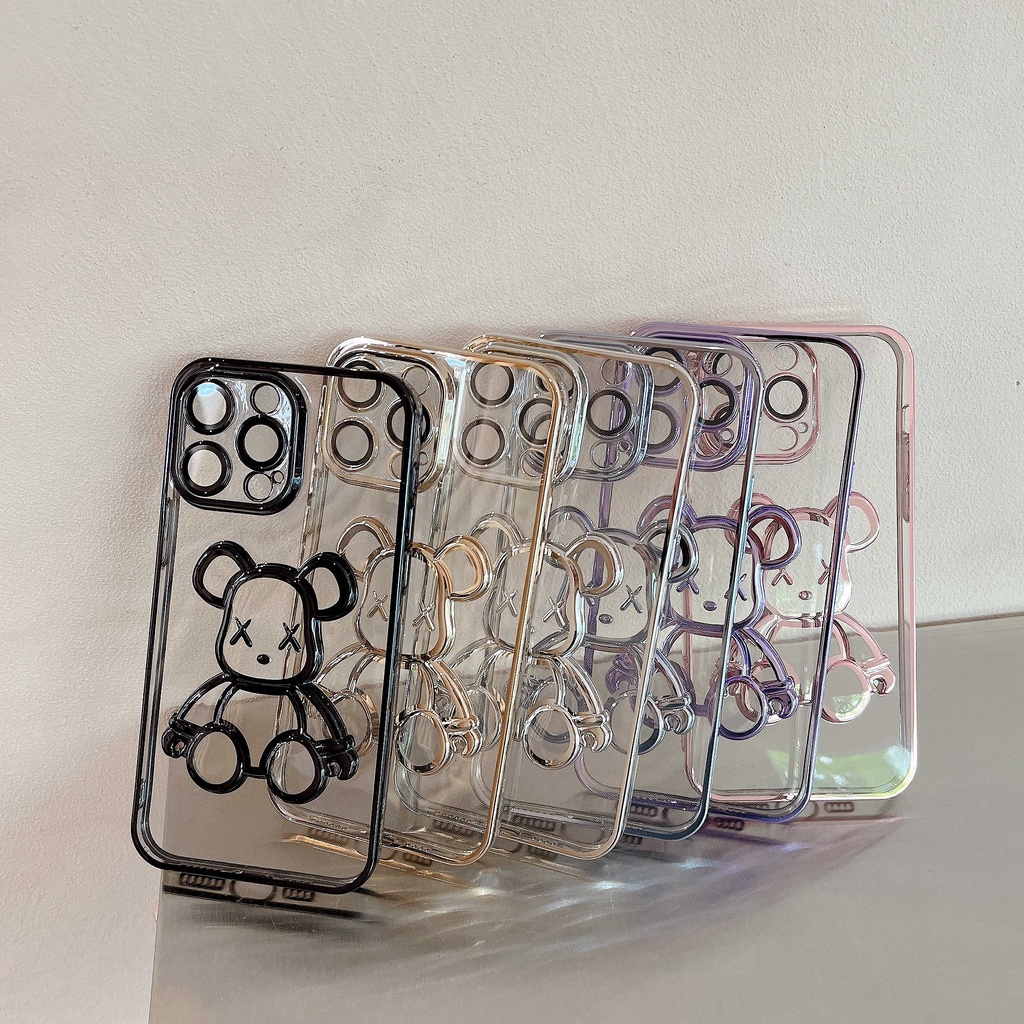Bear Case Soft Casing Untuk iPhone 14 13 12 11 Pro MAX 12/12pro 13pro i11 14pro Pelapisan Silikon Soft Casing Clear Back Cover Shockproof Casing