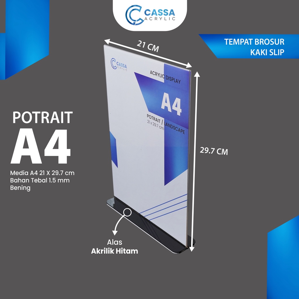 Buku & Alat Tulis > Folder, Organizer Kertas, & Aksesoris > Folder, Organizer Kertas, & Aksesoris Lainnya > 【CASSA】AKRILIK / TEMPAT BROSUR A4 ALAS HITAM / TENT HOLDER / TENT CARD / NOMOR MEJA VERTIKAL